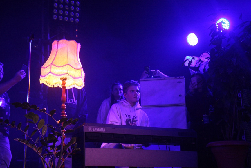 Но не думайте, что Тима может только зажигать толпу. Были на концерте и лирические моменты. Например, один из его битмейкеров, Ян, сел за синтезатор и сыграл акустическую версию «Незабудки» и «Мокрых кросс». Правда, зрители всё равно получили оригинальные версии хитов композиции в финале шоу, но сам момент смотрелся максимально эффектно.