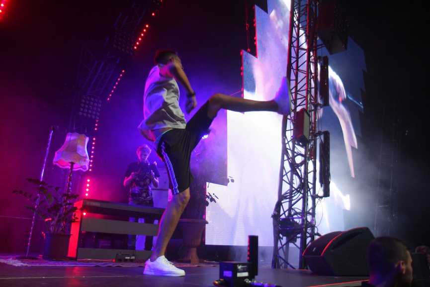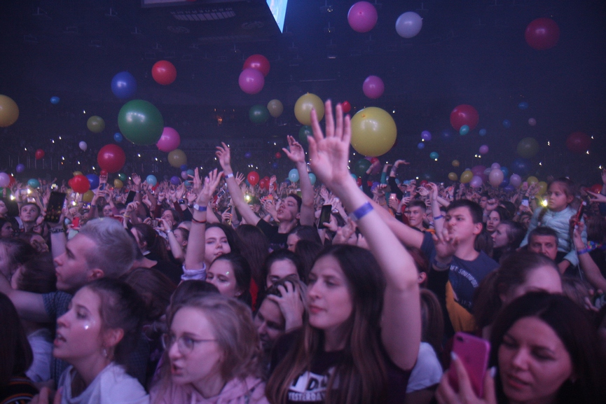 На прошлом концерте Белорусских был максимально расслаблен и даже позволил себе несколько неоднозначных шуток, например, рассказал о том, что «уходит со сцены» (позже выяснилось, что это неправда), а также поливал зрителей водой во время исполнения хита «Мокрые кроссы». Ничего такого в этот раз не было – только драйв, главные бэнгеры и рассуждения о любимых фанатах.