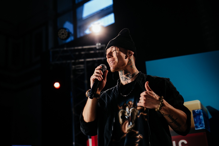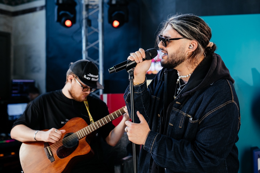 Следом на сцену ТНТ MUSIC LIVE вышел поп-фрешмен Фогель. После лайва музыкант поугадывал клипы вместе с Глебом Болеловым и Владой Голдберг, а также рассказал о месседже, который несёт его музыка.