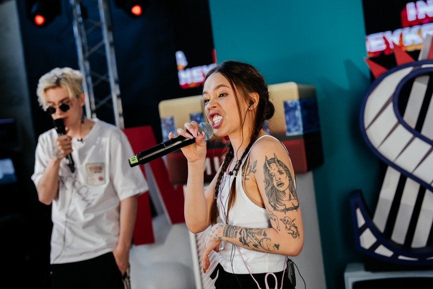 Дерзко заявила о себе на ТНТ MUSIC LIVE INSTASAMKA. На сцене её поддержал MONEYKEN, с которым фрешгёрл зачитала несколько хлёстких куплетов и дала интервью ведущим.