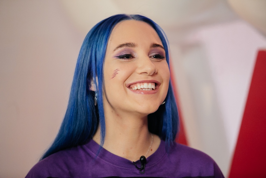 Насчёт Мэйби Бэйби могу ответить. Надеюсь, она не обидится. Ещё раз повторяю, я родилась с таким цветом волос. Мэйби Бэйби носит парик, либо накладные волосы. Сами определяйте, где тут фейк? Это во-первых. Во-вторых, наша музыка кардинально отличается. Мэйби Бэйби недавно делала совместный трек с Дорой, и вот у них очень похожие стили. Потому что они находятся на одном лейбле. А что у меня? Народный хип-хоп, это вообще другое. А у них кьют-рок.