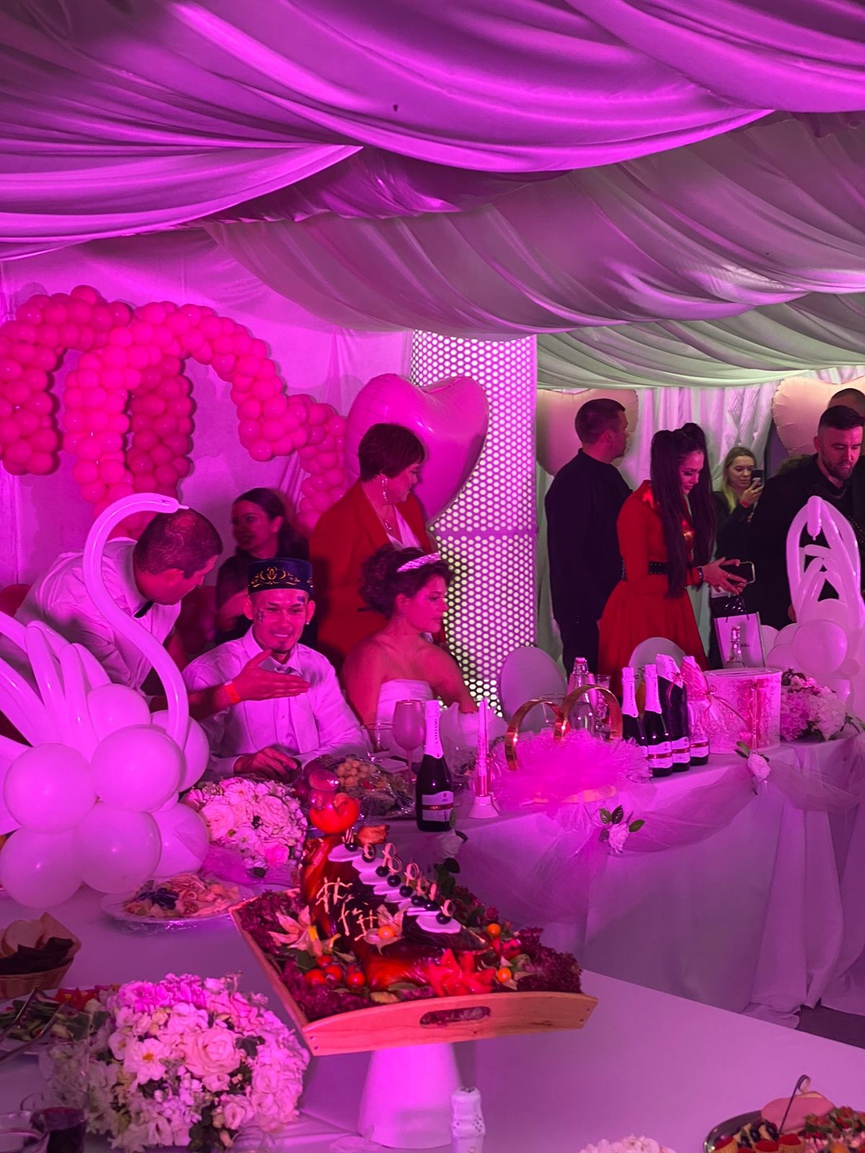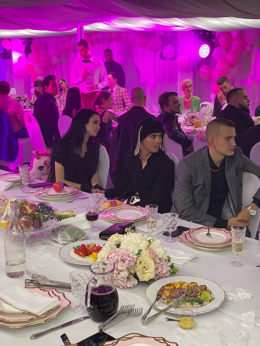 Ведущей вечера стала Ксения Собчак, а Артур Пирожков выступил с лайв-программой из главных хитов. Несмотря на публичную вражду, под одну из песен артиста Алишер и Дилара устроили первый танец молодожёнов. Среди гостей можно заметить Эльдара Джарахова, Slava Marlow с девушкой Кариной Karrrambaby, тиктокера Даню Милохина, Настю Ивлееву, клипмейкера Александра Романова и многих других.